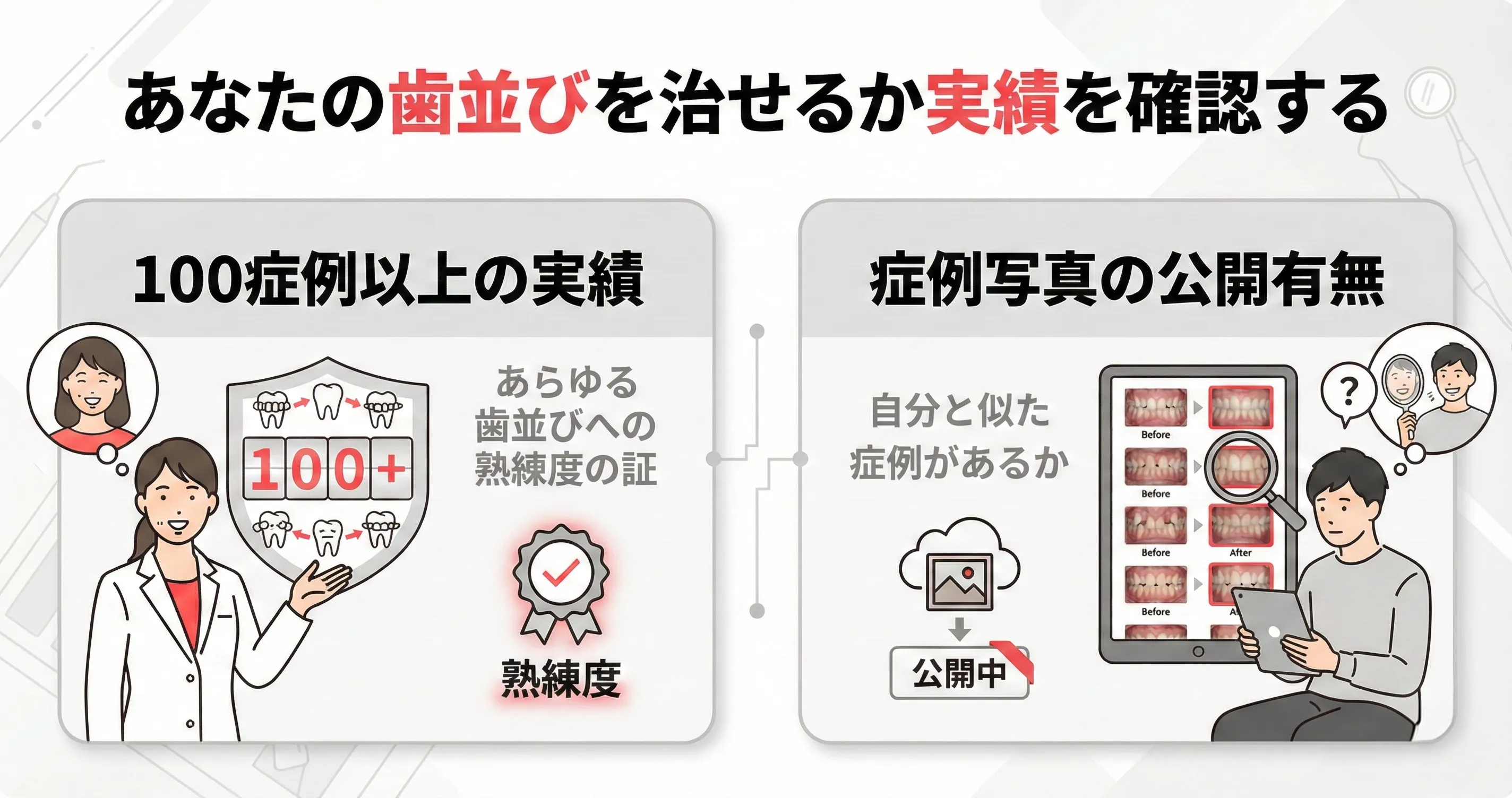 ポイント①:失敗しない基準は「100件以上の実績」と「公開された症例」